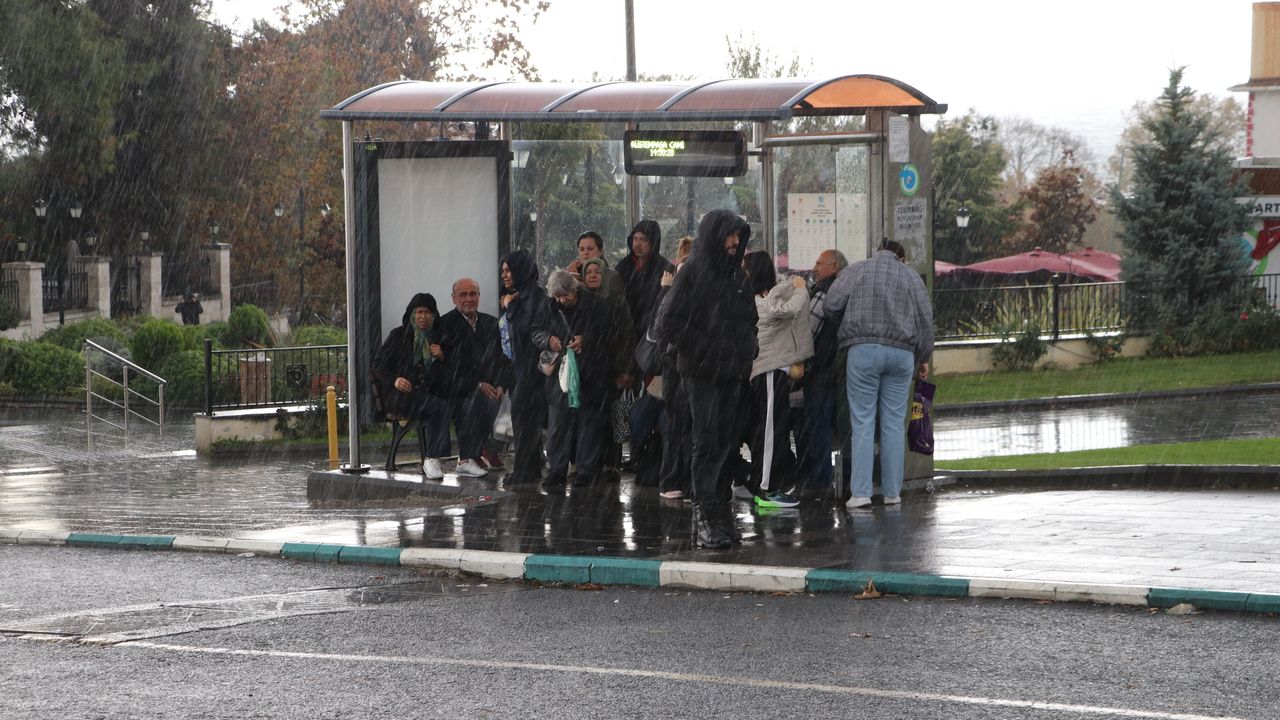 Yağışa hazırlıksız yakalanan bazı vatandaşlar, otobüs duraklarına sığınarak yağmurdan korunmaya çalıştı.