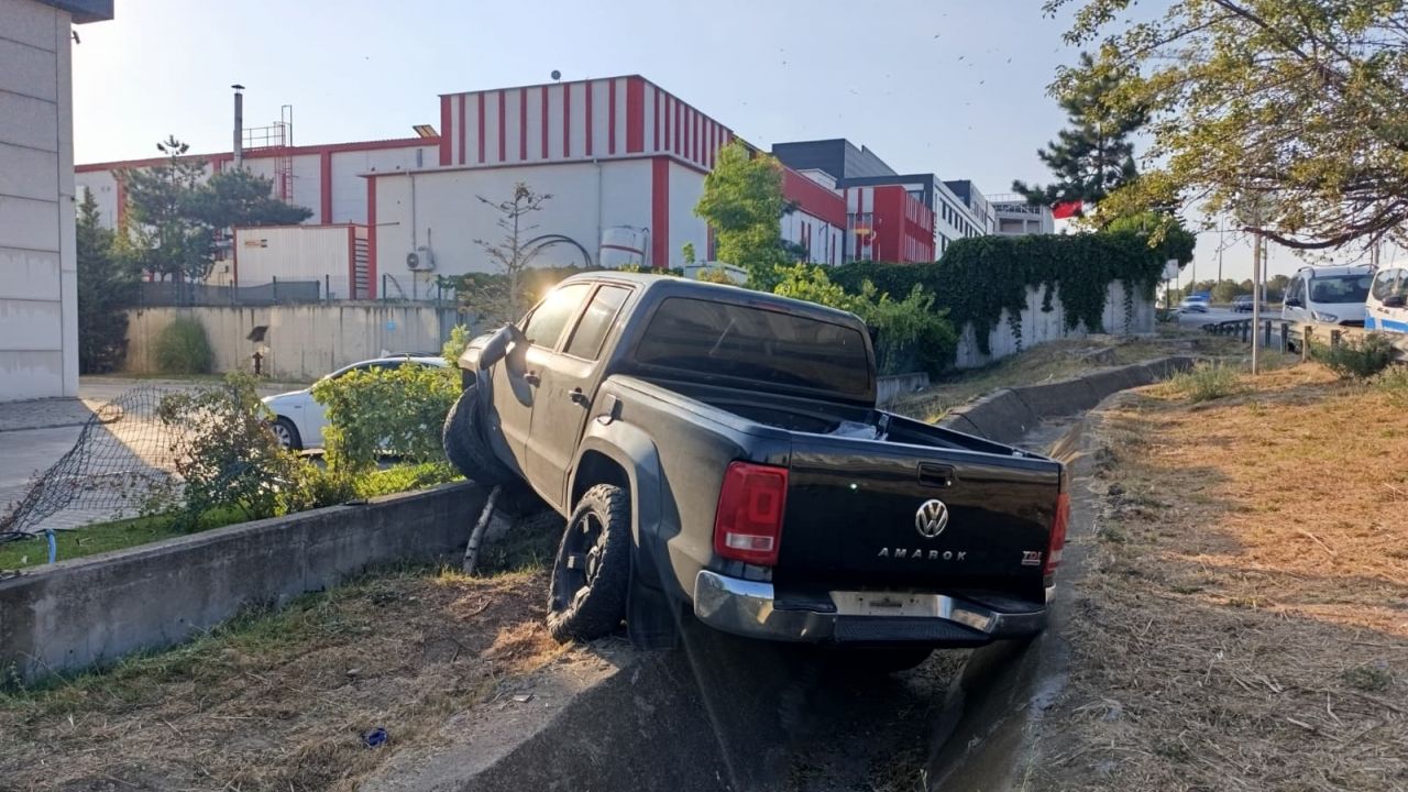 N.C.D. idaresindeki 22 ACR 990 plakalı pikap, Çerkezköy Organize Sanayi Bölgesi'nde karşı şeride geçerek bariyerlere çarpıp kanala devrildi.
