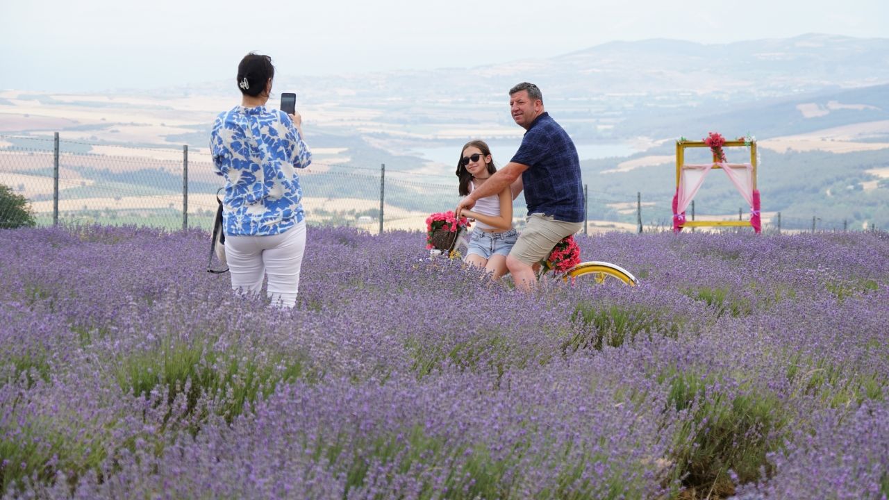 Kente gelen tatilcilerin lavanta tarlalarına uğramadan geçmediğini ifade eden Turgut, "Mor renkli tarlalarımız misafirlerini konuk etmeye devam ediyor. Bu görsel şölen içinde yakın illerden ve Tekirdağ'dan gelen ziyaretçiler güzel fotoğraflar çektirip keyifli vakit geçiyor. Bu güzellikler 10 gün daha devam edecek." dedi.