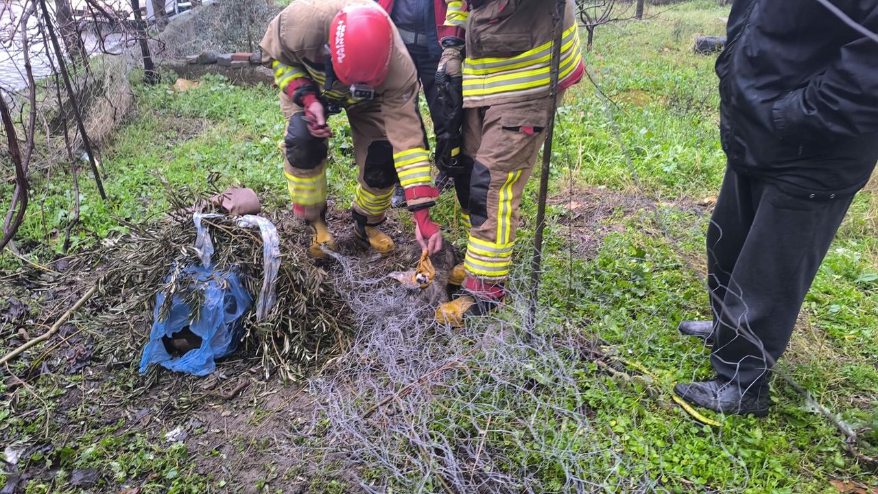 Olay, sabah saatlerinde Ergenekon Mahallesi Yusuf Nalkesen Sokak'ta meydana geldi. Bahçenin tel örgülerine sıkışan tilkiyi fark edenler, durumu Manisa Büyükşehir Belediyesi'ne bağlı Turgutlu İtfaiye Amirliği ekiplerine bildirdi. İhbarla olay yerine gelen ekipler, tilkiyi zarar vermeden tel örgülerden çıkardı. Durumu iyi olan tilki, kontrollerinin ardından doğal yaşam alanına salındı.(DHA)