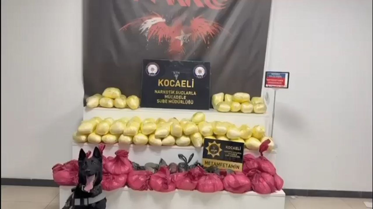 İl Emniyet Müdürlüğü Narkotik Suçlarla Mücadele Şube Müdürlüğü ekipleri, TEM Otoyolu'nda asfalt silindir makinesi yüklü TIR'ı durdurdu. Narkotik köpeği de kullanılan aramada TIR'ın dorsesinde yüklü bulunan asfalt silindir makinesinin silindir kısmına gizlenmiş 100 paket halinde 102 kilogram metamfetamin ele geçirildi.