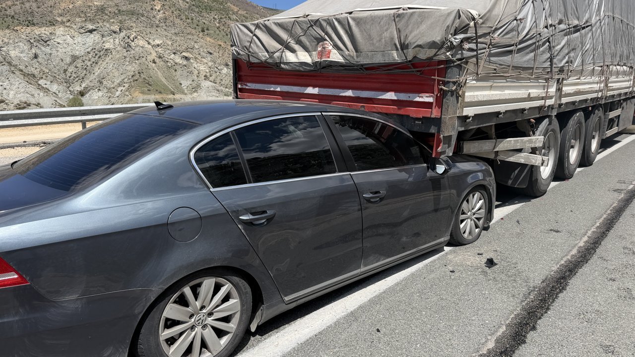 Kadir AYDIN/MALATYA, (DHA)- MALATYA'nın Doğanşehir ilçesinde TIR'a arkadan çarpıp, altına giren otomobilin sürücüsü İbrahim Coşkun, kazadan yara almadan kurtuldu.