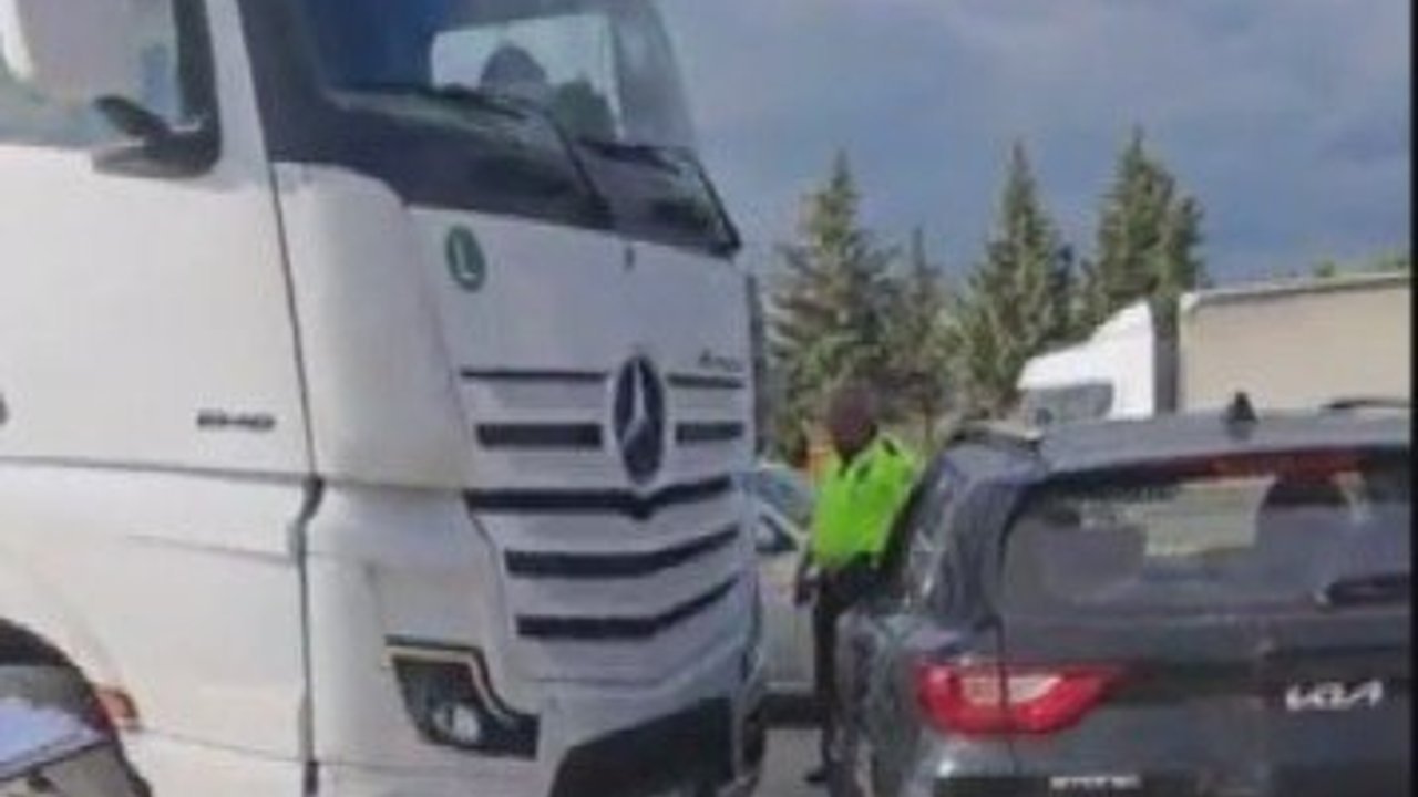 Şerife Serap KARA/SULUOVA (Amasya), (DHA)- AMASYA'nın Suluova ilçesinde, TIR'ın çarpıp metrelerce önünde sürüklediği kazada 1 kişi yaralandı. Kaza, güvenlik kamerasına yansıdı.