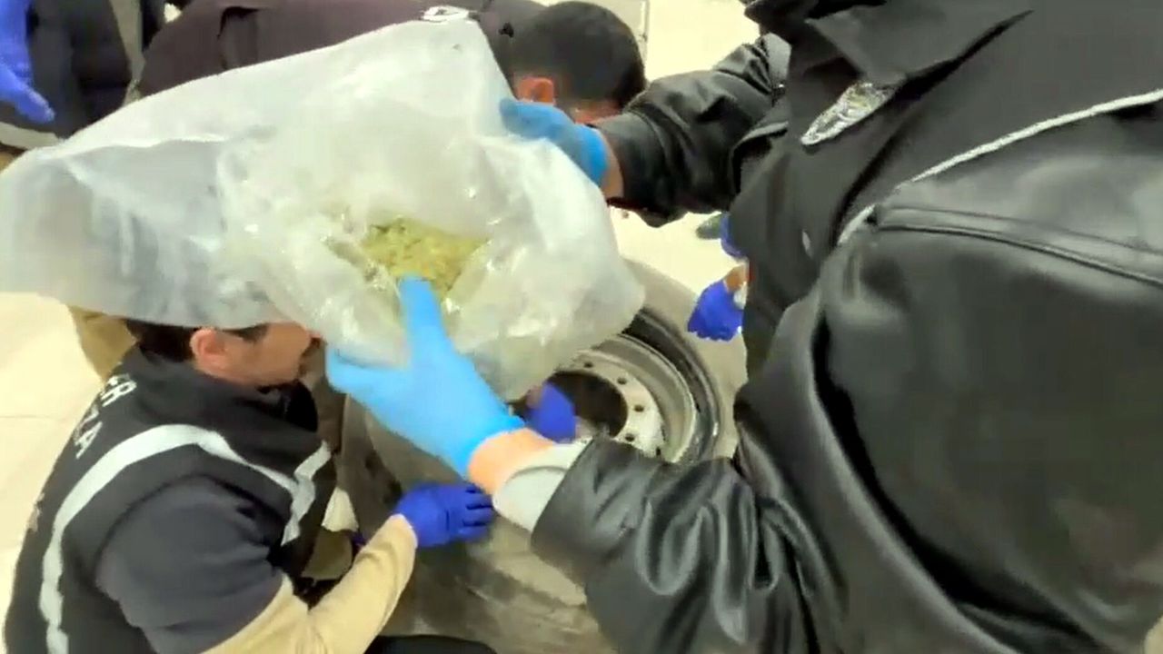 Olgay GÜLER/EDİRNE, (DHA)- EDİRNE'den Bulgaristan'a açılan Hamzabeyli Sınır Kapısı'ndan Türkiye'ye giriş yapan TIR'ın stepnesinde 22,5 kilo skunk ele geçirildi, 1 şüpheli gözaltına alındı.