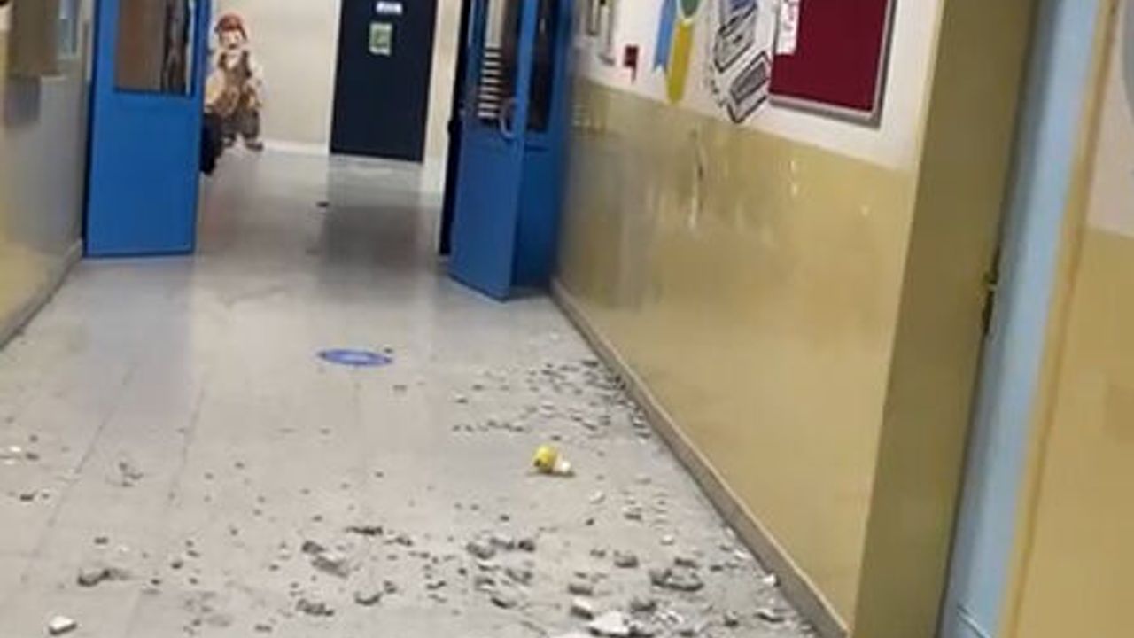 Niksar'da bir okulda ise deprem sonrası duvarlarda çatlaklar olduğu görüldü. (DHA)