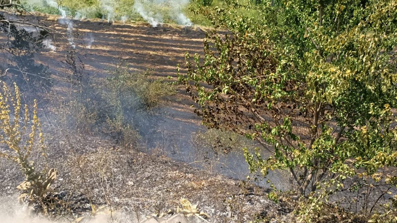 İlçeye bağlı Çiftlik köyündeki tarlada bilinmeyen nedenle yangın çıktı.