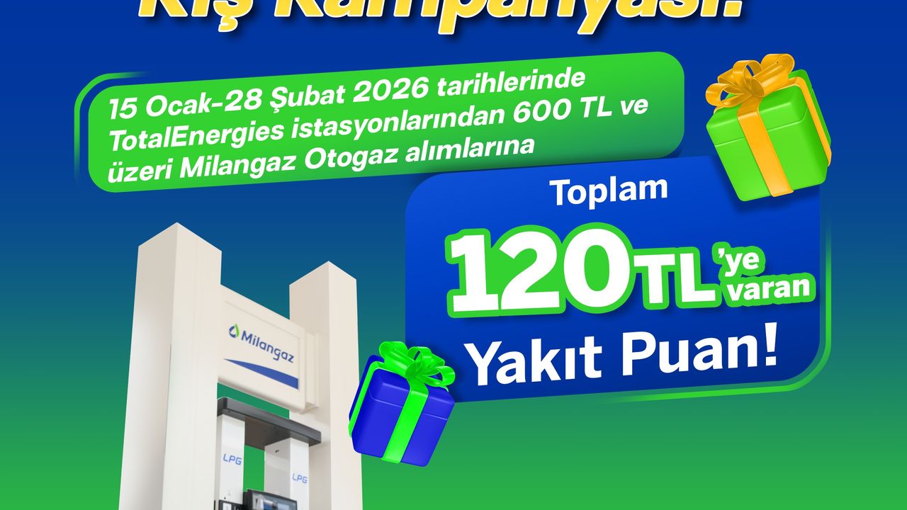 TotalEnergies İstasyonları, kış dönemi kampanyası kapsamında Milangaz Otogaz alışverişlerine 120 TL'ye kadar yakıt puan veriyor. 15 Ocak-28 Şubat tarihleri arasında geçerli olan kampanyadan Club TotalEnergies üyeleri faydalanabilecek.