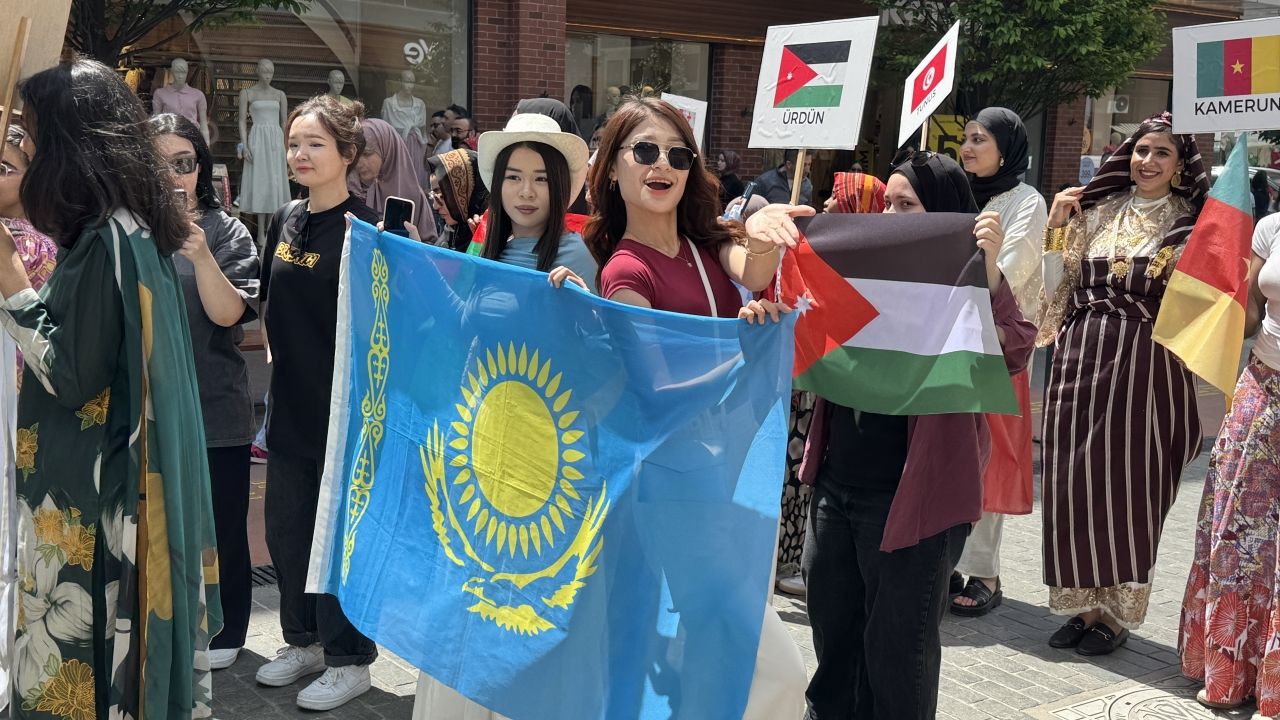 Öğrenciler, kortej yürüyüşünün de gerçekleştirildiği etkinlikte, ülkelerine özgü yiyecek ve kıyafetleri tanıttı.