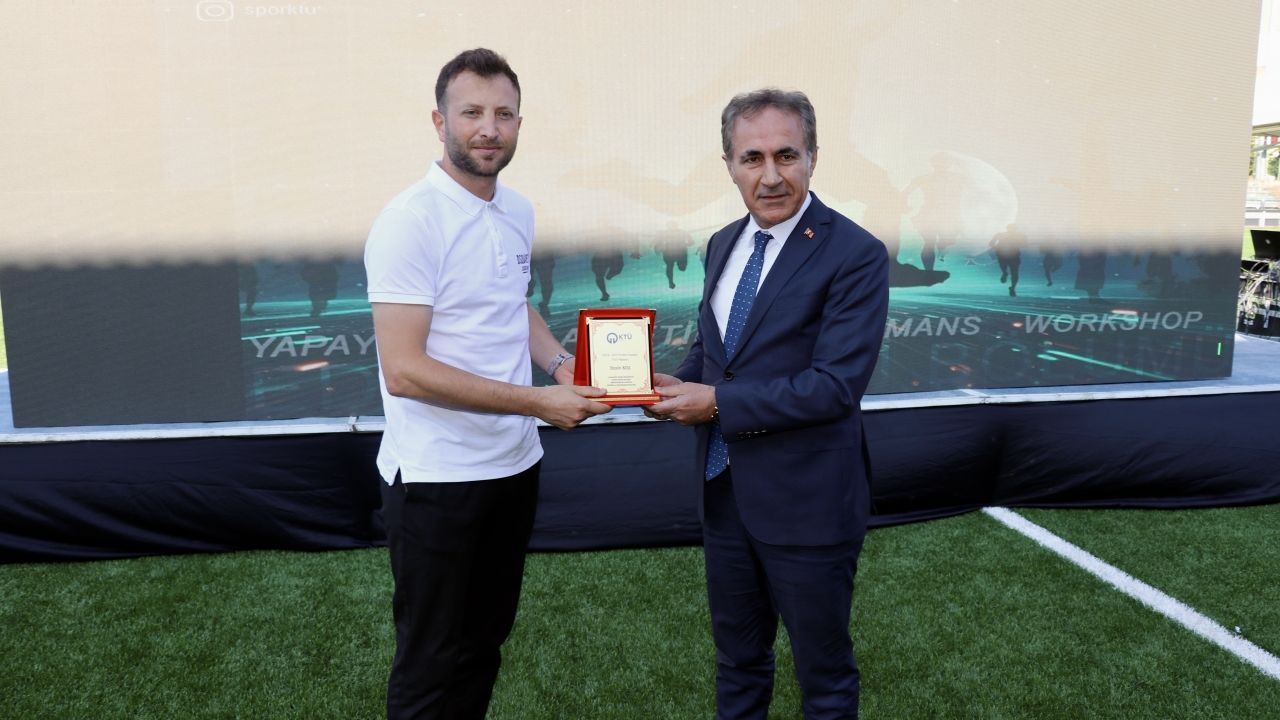 Konuşmaların ardından İl Gençlik ve Spor Müdürü Lokman Arıcıoğlu, Trendyol Süper Lig hakemlerinden Yasin Kol'a, "yılın hakemi" yazılı plaket verdi.