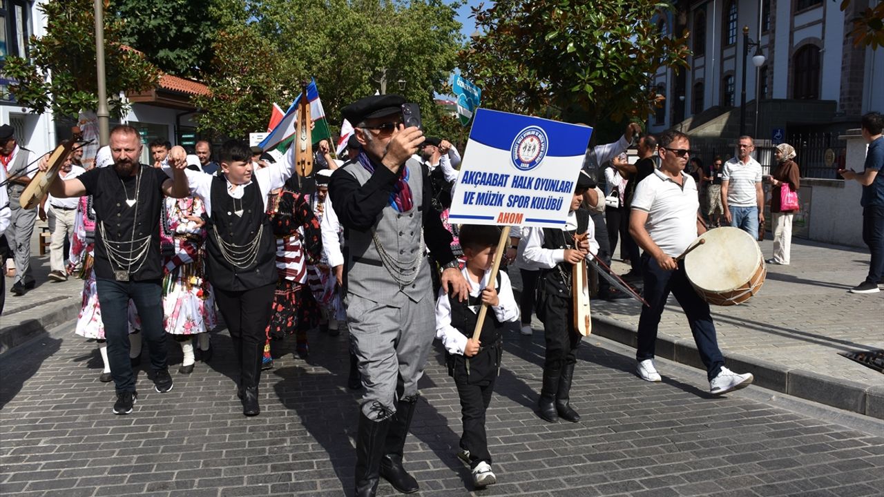 Büyükşehir Belediyesinin paydaşlığında "Dünya barışı için horon ile el ele" sloganıyla gerçekleştirilen festival kapsamında Trabzon'a gelen 36 ülkeden 795 kişi kortej eşliğinde, Kahramanmaraş Caddesi'nden Hüseyin Avni Aker Millet Bahçesi'ne kadar yürüdü.