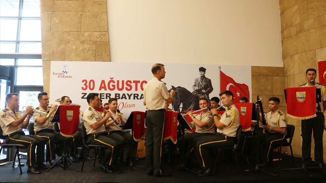 Zafer Bayramı etkinlikleri kapsamında Ortahisar ilçesindeki bir alışveriş merkezinde konser veren bando ekibi, Binbaşı Onur Arınç Duran yönetiminde marşlar ve türküler seslendirdi.