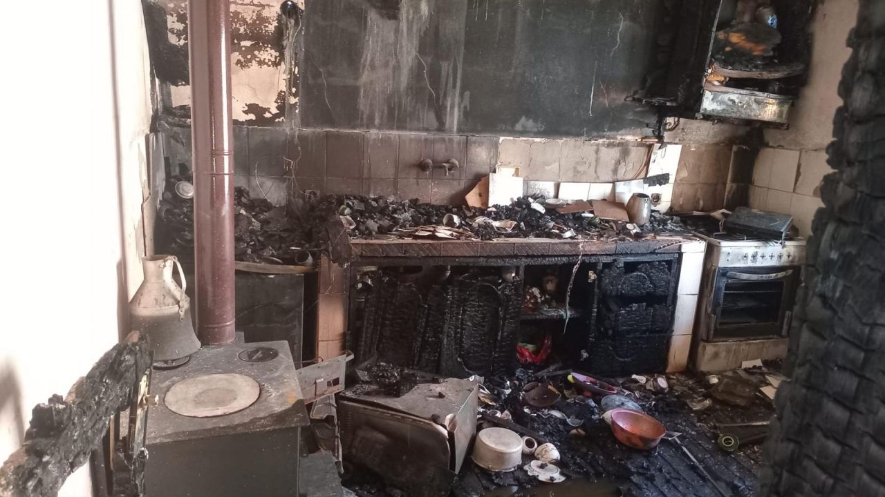 Ekiplerin müdahalesiyle söndürülen yangında 2 ev de kullanılamaz hale geldi.
