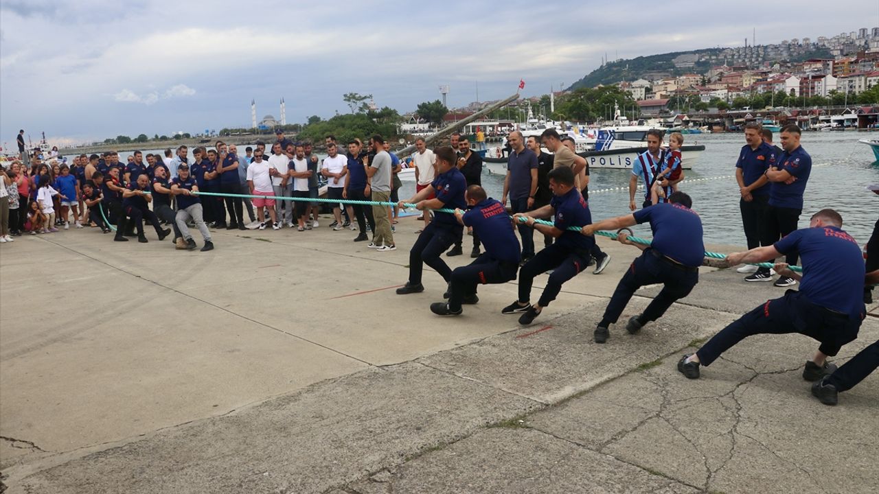 Trabzon Bölge Liman Başkanlığınca Faroz Balıkçı Barınağında yapılan etkinlikte yarışmacılar, gres yağıyla kaplanmış 12 metre uzunluğundaki direğin ucunda asılı bayrağı kapmak için kıyasıya mücadele etti.