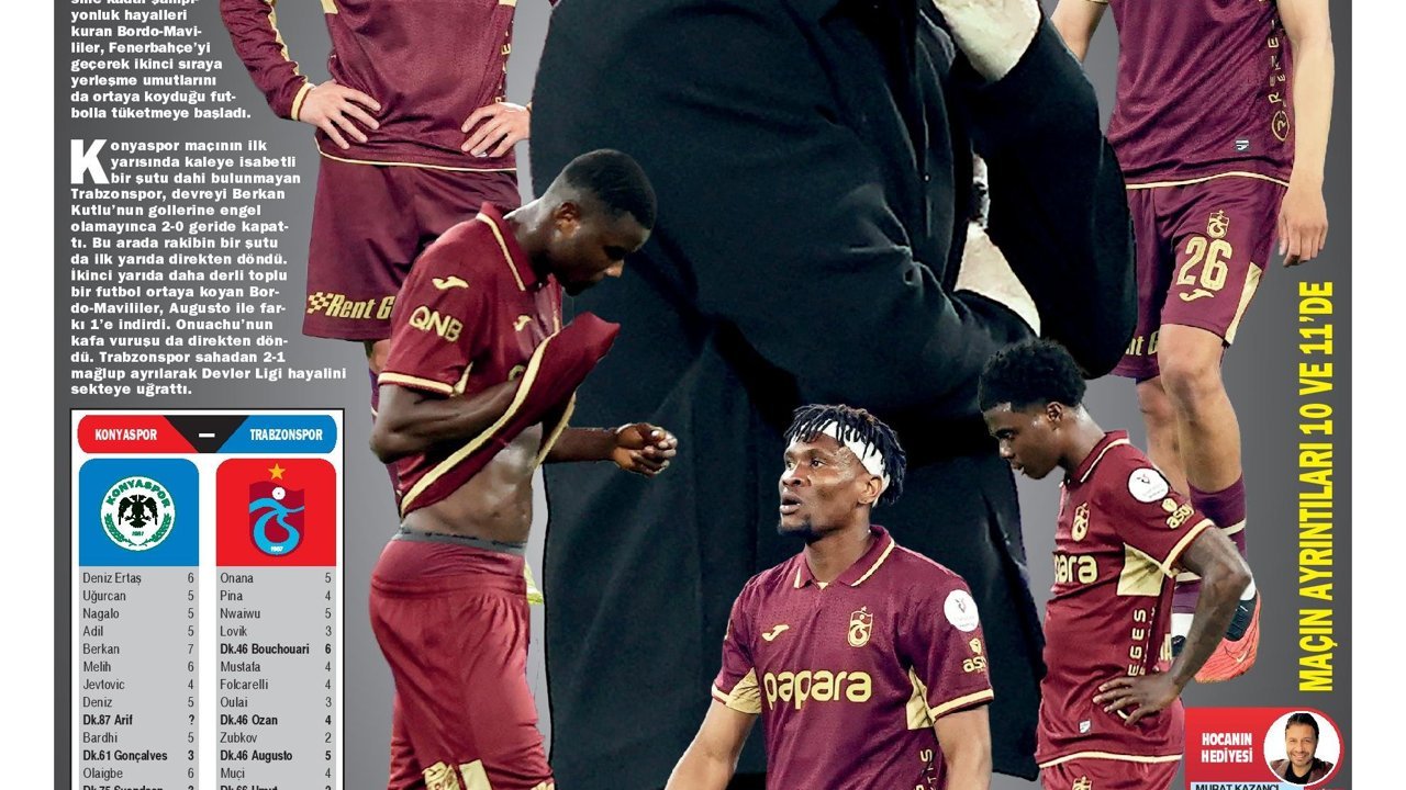 Öte yandan Trabzon'da yayın yapan yerel gazeteler de bordo-mavili takımın TÜMOSAN Konyaspor deplasmanında aldığı beraberliği manşetlerine farklı başlıklarla taşıdı.