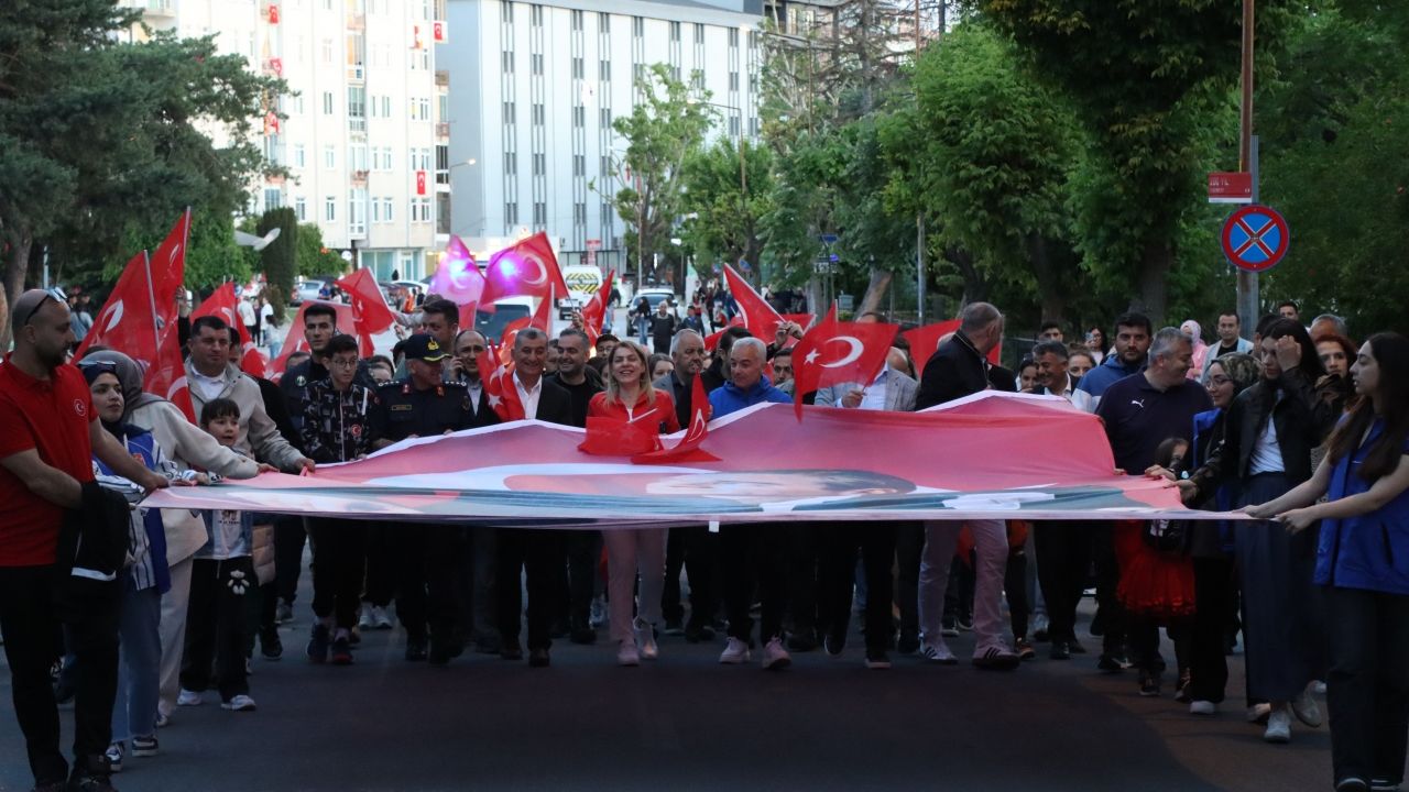 Kortej, taşıdıkları Türk bayrakları, Atatürk posteri ve meşalelerle bando eşliğinde Atatürk Anıtı'na kadar yürüdü.