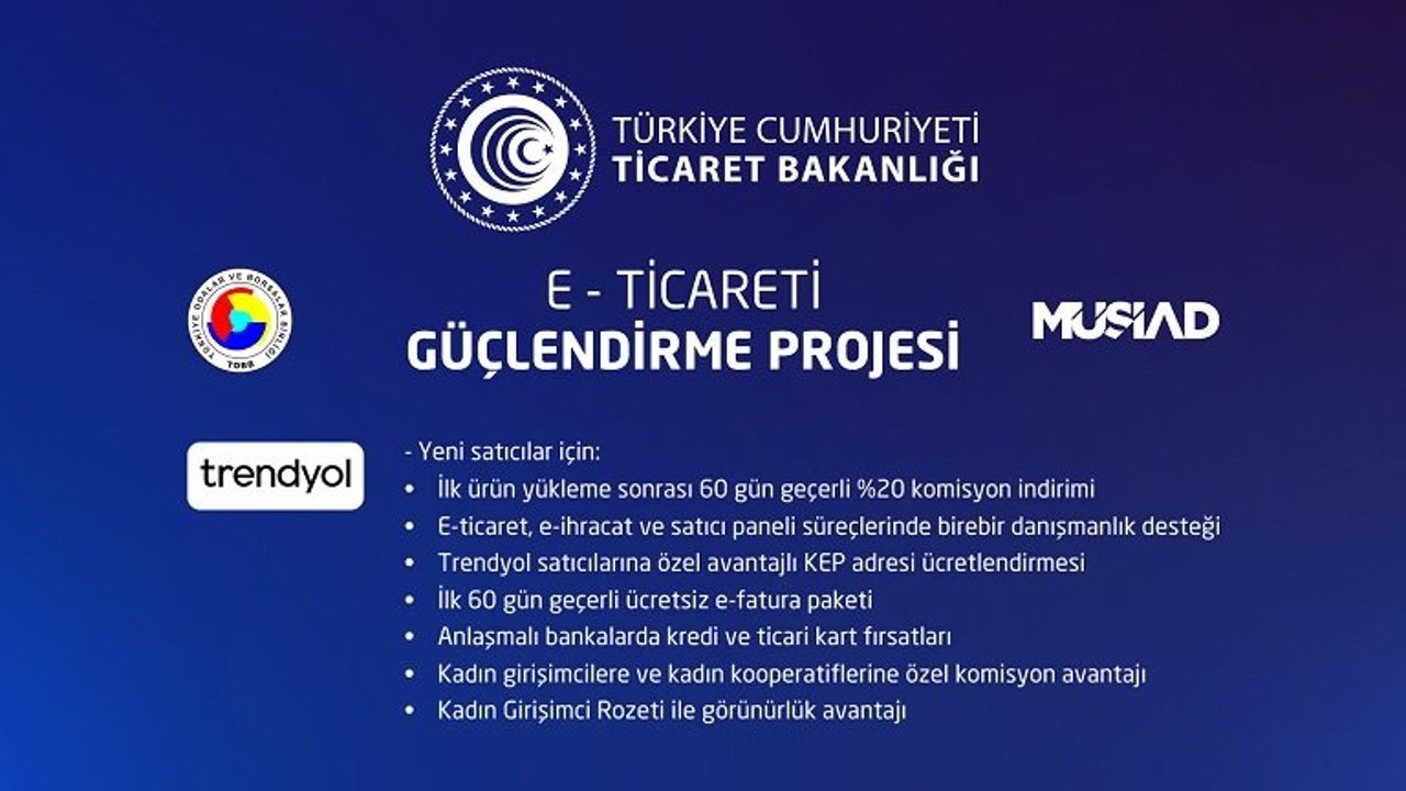 Ticaret Bakanlığı'nın Türkiye Odalar ve Borsalar Birliği (TOBB), MÜSİAD, TOBB Türkiye E-ticaret Meclisi ve sektör oyuncularının katkısıyla yürüteceği eğitim programı, yerli üretici, esnaf ve KOBİ'leri e-ticaretle tanıştıracak. Trendyol'un da destekçileri arasında bulunduğu Elektronik Ticareti Güçlendirme Projesi, girişimciliği güçlendirip esnaf ve KOBİ'leri dijital ticaretin sunduğu yeni fırsatlarla buluşturmayı hedefliyor. Program, yerel üreticilere markalaşma, dijital görünürlük ve lojistik fırsatlarıyla yalnızca yurtiçi değil küresel pazarlara da açılma fırsatı sunuyor.