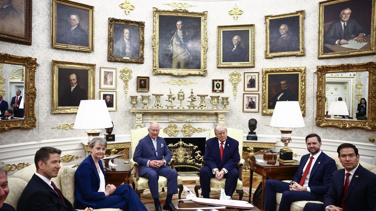 ABD Başkanı Donald Trump ve eşi Melania Trump, İngiltere Kralı Charles ile eşi Kraliçe Camilla'yı Beyaz Saray'ın bahçesinde en üst düzey protokolün uygulandığı geniş katılımlı bir törenle karşıladı. Trump, burada yaptığı konuşmada, iki ülke arasındaki tarihi bağlara ve köklü ilişkilere değinerek, 'Sizi burada ağırlamak bizim için büyük bir onur' dedi. ABD'nin bağımsızlığının 250'nci yıl dönümünün bu yıl kutlanacağına vurgulayan Trump, bunun 'ironik' görünebileceğini, fakat Amerikalıların İngiliz kökenlerine halen güçlü bir övünç duyduğunu söyledi. Trump, 'Amerikalıların İngilizlerden daha yakın dostu yoktur' ifadesini kullandı.