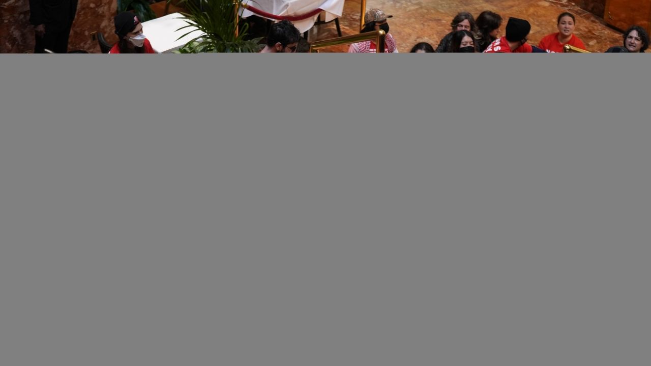 JVP üyeleri, Columbia Üniversitesi'nde İsrail'in Gazze'ye yönelik saldırılarının kınandığı gösterilere öncülük eden Halil'in gözaltına alınmasına tepki göstermek amacıyla New York'taki Trump Tower'da toplandı.