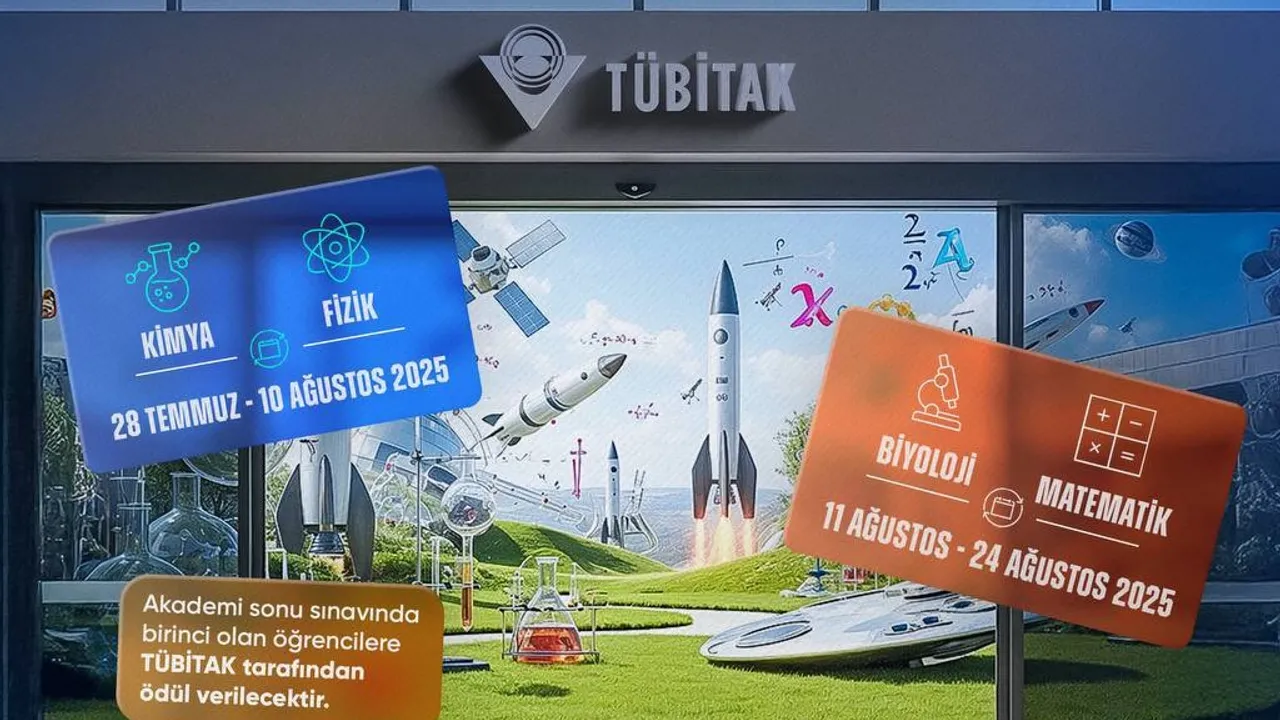 TÜBİTAK destekli 37 Bilim Merkezi’nde düzenlenecek Yaz Akademileri, 7. ve 8. sınıf öğrencilerine kapılarını açıyor. Akademi-1 (Kimya ve Fizik) 28 Temmuz-10 Ağustos, Akademi-2 (Biyoloji ve Matematik) ise 11-24 Ağustos 2025 tarihlerinde gerçekleşecek.