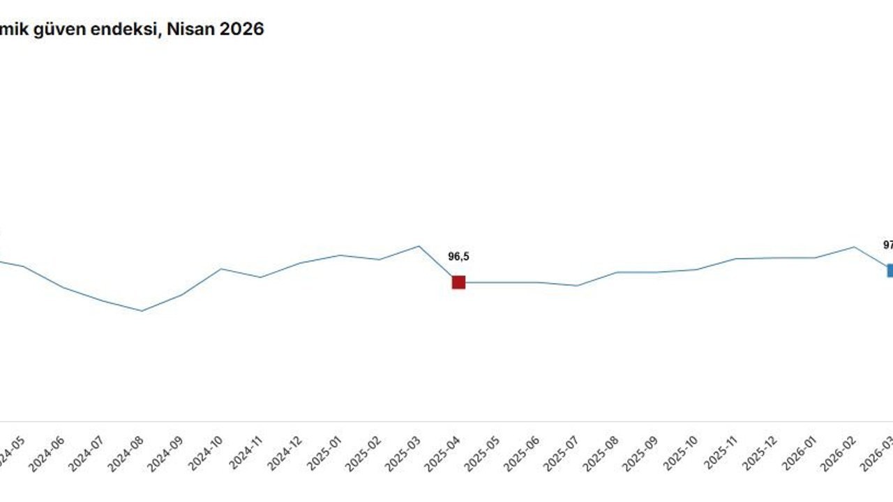 TÜİK, Nisan 2026 dönemine ilişkin ekonomik güven endeksi verilerini açıkladı. Buna göre; ekonomik güven endeksi nisan ayında bir önceki aya göre yüzde 1,5 oranında azalarak 96,4 değerini aldı. Nisan ayında tüketici güven endeksi yüzde 0,5 oranında artarak 85,5 değerini, reel kesim (imalat sanayi) güven endeksi yüzde 1,4 oranında azalarak 98,6 değerini, hizmet sektörü güven endeksi yüzde 3,1 oranında azalarak 109,7 değerini, perakende ticaret sektörü güven endeksi yüzde 1,8 oranında azalarak 111,6 değerini, inşaat sektörü güven endeksi yüzde 3,6 oranında artarak 83,6 değerini aldı. (DHA)