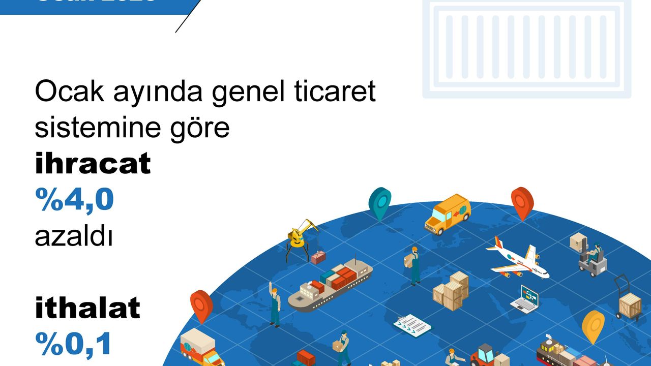Nisa MİĞAL/ANKARA, (DHA)- TÜRKİYE İstatistik Kurumu (TÜİK), ocak ayında genel ticaret sistemine göre ihracatın yüzde 4 azaldığını, ithalatın yüzde 0,1 arttığını açıkladı.