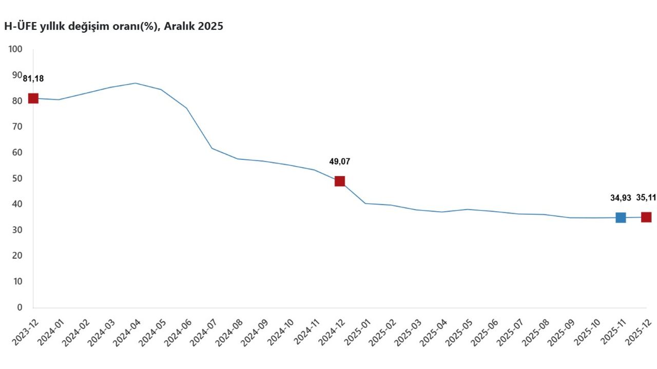 ANKARA, (DHA)- TÜRKİYE İstatistik Kurumu (TÜİK), hizmet üretici fiyatlarının aralıkta yılık yüzde 35,11, aylık yüzde 0,78 arttığını açıkladı.