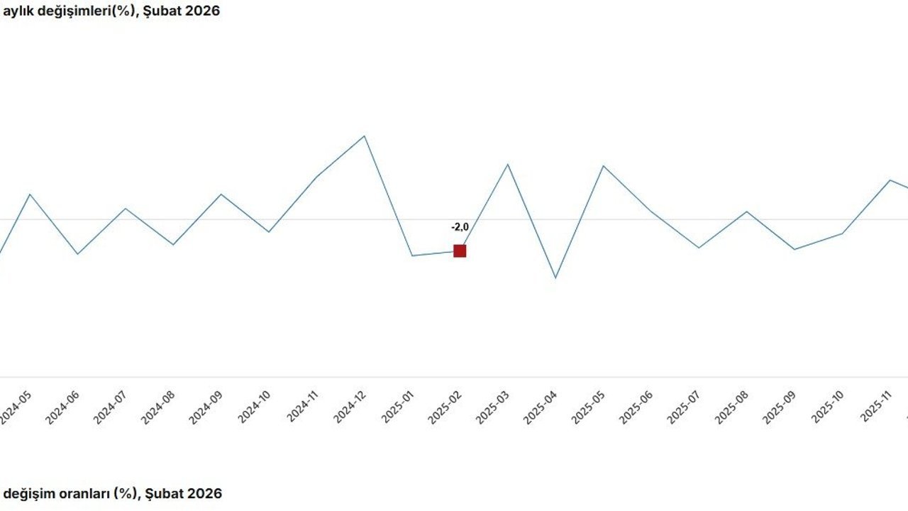 TÜİK, Şubat 2026 dönemine ilişkin sanayi üretim endeksi verilerini açıkladı. Buna göre; sanayi üretimi şubat ayında bir önceki yılın aynı ayına göre yüzde 2,2 arttı. Sanayinin alt sektörleri incelendiğinde, 2026 yılı Şubat ayında madencilik ve taş ocakçılığı sektörü endeksi bir önceki yılın aynı ayına göre yüzde 4,1 arttı, imalat sanayi sektörü endeksi yüzde 2,4 arttı ve elektrik, gaz, buhar ve iklimlendirme üretimi ve dağıtımı sektörü endeksi yüzde 2,2 azaldı. Şubat ayında sanayi üretimi, bir önceki aya göre yüzde 2,6 arttı. Sanayinin alt sektörleri incelendiğinde, madencilik ve taş ocakçılığı sektörü endeksi bir önceki aya göre yüzde 0,4 arttı, imalat sanayi sektörü endeksi yüzde 3,3 arttı ve elektrik, gaz, buhar ve iklimlendirme üretimi ve dağıtımı sektörü endeksi yüzde 3,6 azaldı. (DHA)