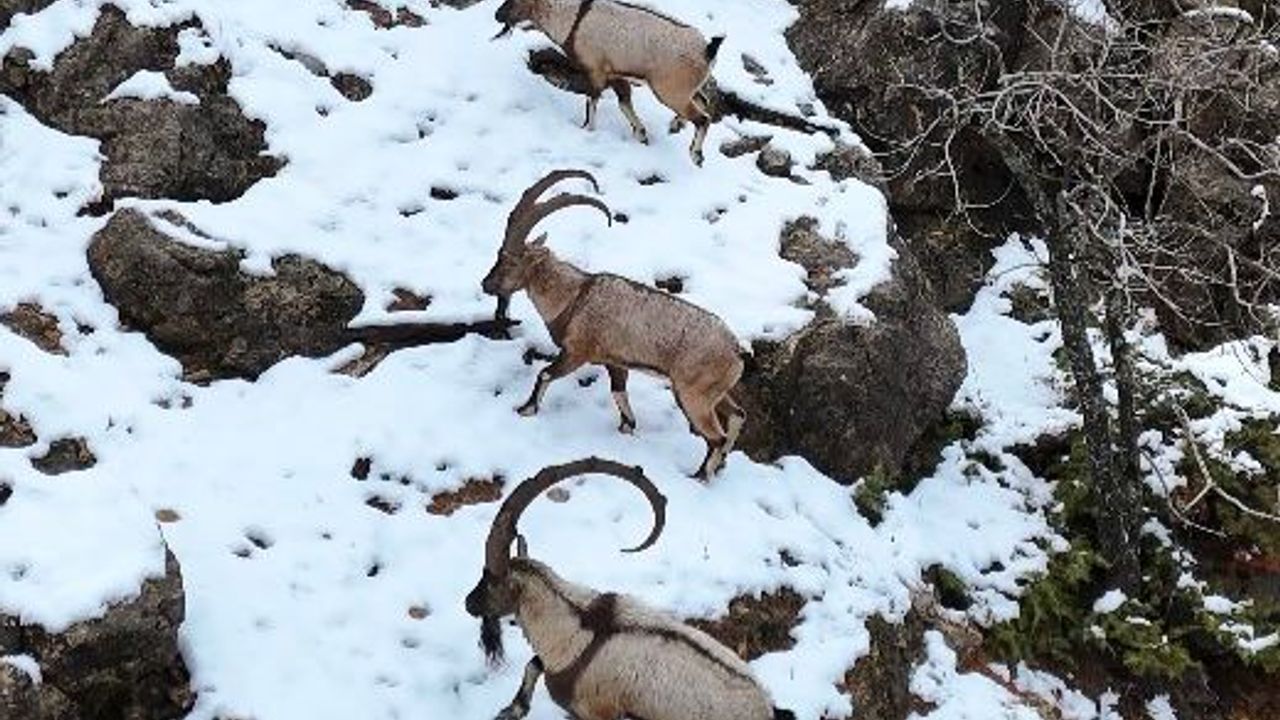 Serhat Ozan YILDIRIM/TUNCELİ, (DHA)- TUNCELİ'de kar kalınlığı yarım metreyi aşarken, yiyecek bulmakta zorlanan yaban hayvanları için harekete geçildi. Bu kapsamda Vali Şefik Aygöl ile Doğa Koruma ve Milli Parklar ekipleri, özellikle dağ keçisi popülasyonunun yoğun olduğu bölgeye yem bıraktı.