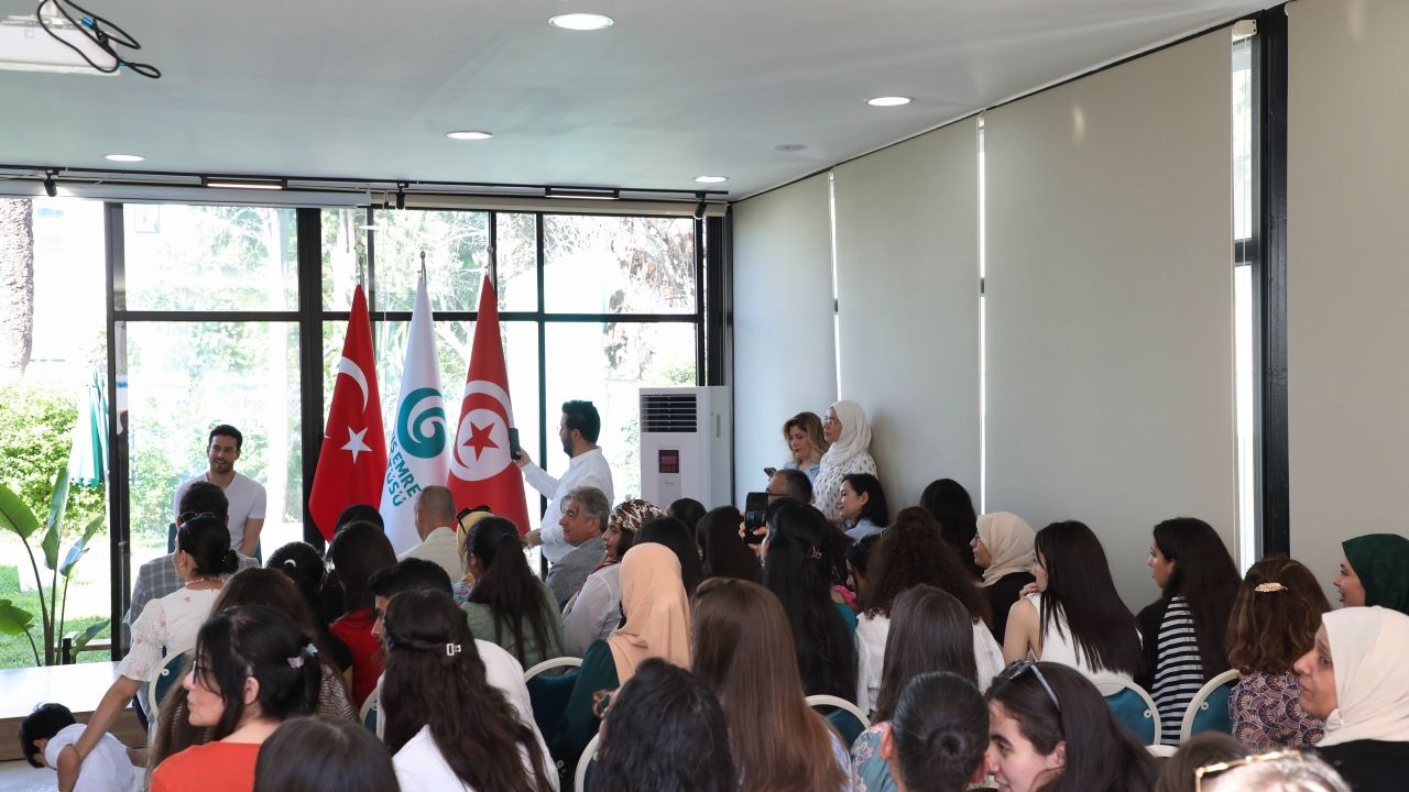 Film haftası kapsamında gösterilen “Bizim İçin Şampiyon” filmin başrol oyuncusu Ekin Koç’un katılımı ile YEE’de düzenlenen söyleşiye, Tunus Büyükelçisi Ahmet Misbah Demircan, Kültür ve Turizm Bakanlığı Ataşesi Yunus Düzcü, YEE Koordinatörü Dr. Ali İhsan Çevik, YEE öğrencileri ve Tunuslu izleyiciler katıldı.