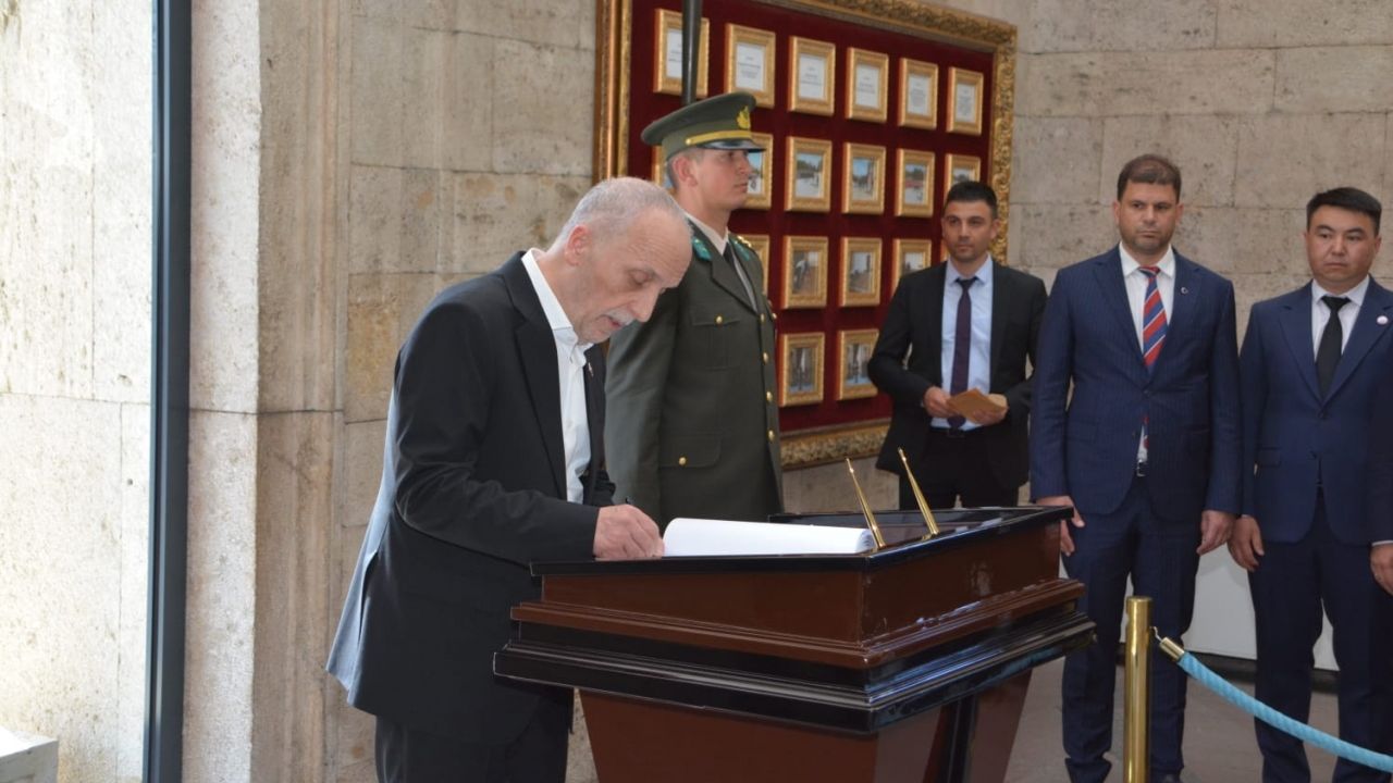 Atalay başkanlığındaki Türk Devletleri Sendikalar Teşkilatı Birliği üyelerinden oluşan heyet, Aslanlı Yol'dan yürüyerek Gazi Mustafa Kemal Atatürk'ün mozolesine geldi.