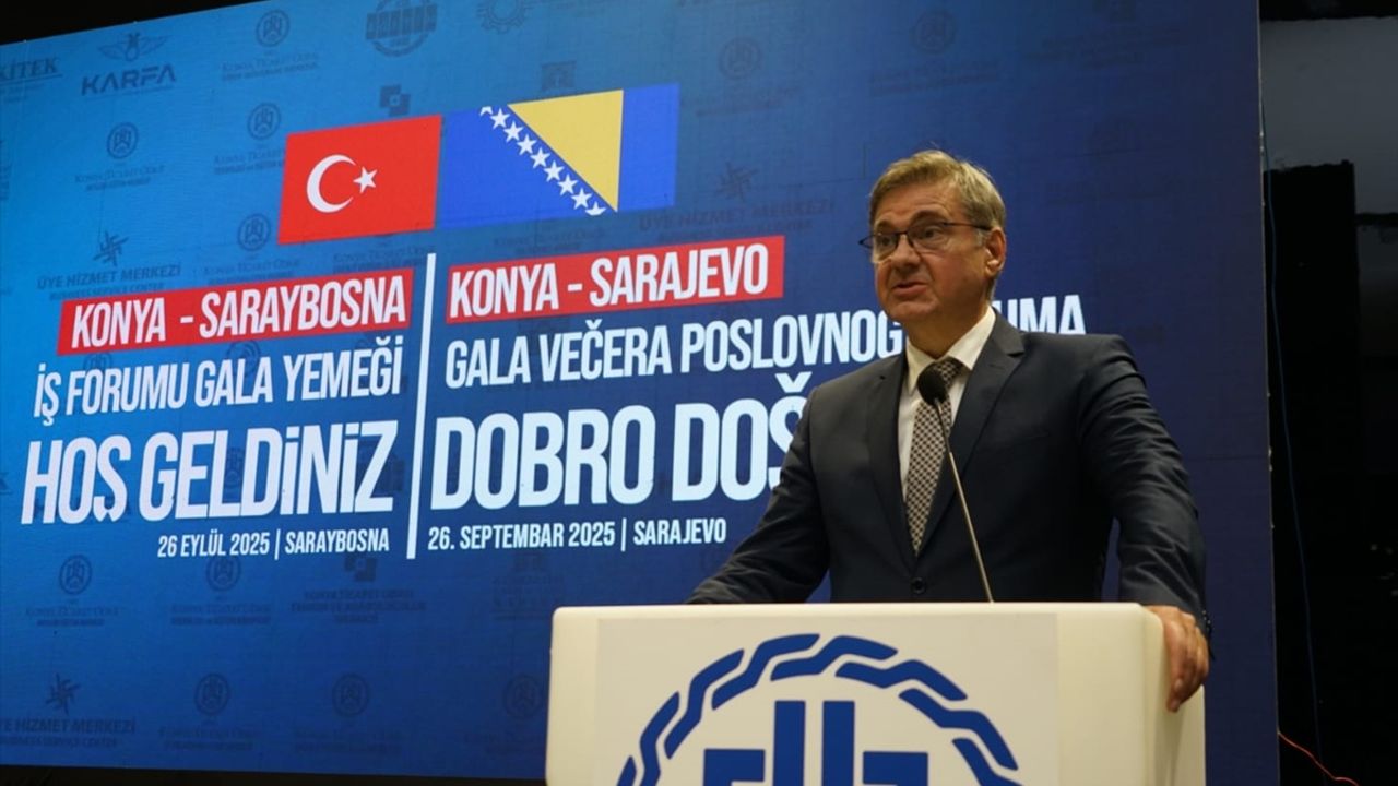 'Konya'nın Bosna Hersek'e olan ilgisi, savaş döneminden bu yana her zaman güçlü olmuştur. Bugün de Konya, sahip olduğu ekonomik ve ticari tecrübelerini Bosnalı iş insanlarıyla paylaşmak için buradadır. Türkiye'nin Balkanlar'daki yatırımlarında Bosna Hersek, ilk sırada yer alıyor.'