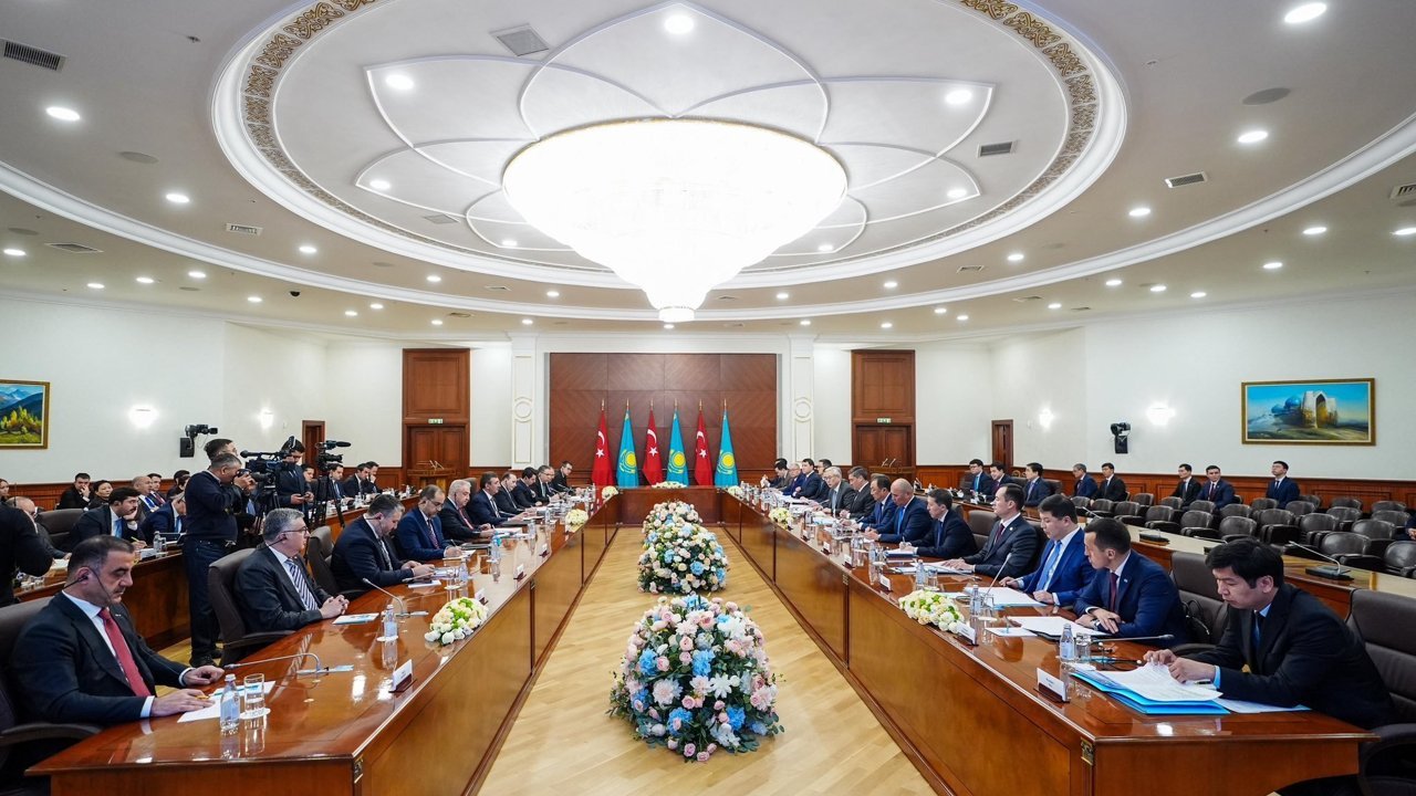 'Bunun yanında, ülkemizin bölgesel ve küresel finans merkezi olma hedefi doğrultusunda 2023'te açtığımız İstanbul Finans Merkezi, güçlü mevzuat altyapısı ve vergi avantajları ile öne çıkmaktadır. 2025 yılında İstanbul Finans Merkezi bünyesinde finansal teknolojilere odaklanan tematik bir teknopark olan Fintech Zone'u kurduk. Karşılıklı yatırımlarımızın finans gibi diğer sektörlerde çeşitlenmesi için Kazak firmalarını da teşviklerimizden faydalanmaya ve teknoparklarımızda yer almaya davet ediyoruz. Ticari ve ekonomik ilişkilerimizin bir diğer sac ayağını da Türk müteahhitlik firmalarımızın Kazakistan'daki başarılı geçmişi oluşturmaktadır. Müteahhitlerimiz bugüne kadar 30,1 milyar dolar değerinde 541 proje üstlenerek Kazakistan'ın kalkınma ve atılım hamlesine önemli katkılar sunmaya devam etmektedir. Bundan sonra da Kazakistan'ın hangi bölgesinde ihtiyaç duyuluyorsa oralarda görev almaya hazırdırlar. Küresel tedarik zincirleri bugün çok derin bir kırılma geçiriyor. Kuzey koridoru jeopolitik gerilimler nedeniyle öngörülemez hale geldi. Güney güzergahı ise kapasitesinin sınırlarını zorluyor. Bu tablo, Orta Koridoru bir alternatif değil, zorunlu bir tercih haline getirmiştir. Ve bu güzergahın merkezinde Türkiye ile Kazakistan yer almaktadır. Bu anlamda, Orta Koridor sadece iki ülkenin değil, tüm Avrasya'nın yükünü taşıyacak bir hat. Ve o hat ne kadar sağlam olursa, o hattın üzerinde inşa edeceğimiz ortak refah da o kadar kalıcı olacak. Unutmayalım ki, bin yıl önce atalarımız İpek Yolu üzerinde alışveriş yaptı, bilim aktardı ve kültür inşa etti. Bugün bizler o mirasın üzerinde yükselerek 21'inci yüzyılın dijital, yeşil ve entegre ticaret ve ulaştırma koridorunu inşa etmeye çalışıyoruz.'