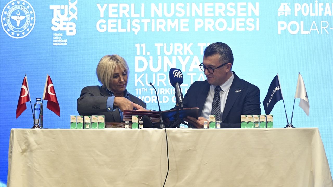 Sağlık Bakanı Kemal Memişoğlu ile farklı ülkelerin sağlık bakanlarının da katıldığı kurultay kapsamında, TÜSEB Başkanı Ümit Kervan ile Polifarma Yönetim Kurulu Başkan Yardımcısı Vildan Kumrulu arasında SMA tedavisinde kullanılan nusinersen etkin maddesi ve ilacının yerli imkanlarla geliştirilip üretilmesine yönelik işbirliği protokolü imzalandı.