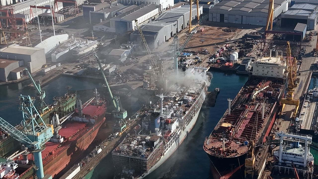 Tersaneler Caddesi'nde bulunan bir tersanedeki gemide henüz belirlenemeyen nedenle yangın çıktı.