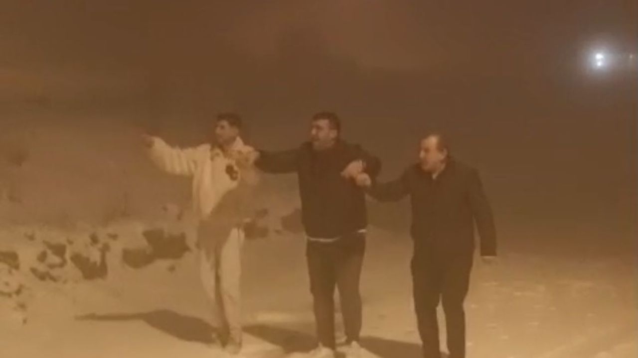 Türkiye'nin önemli kış turizmi merkezlerinden Uludağ'da hafta sonu etkili olan kar yağışıyla birlikte yerler beyaz örtüyle kaplandı. Kar yağışının keyfini çıkarmak isteyenler pistlere akın ederken, kayak yapmaya giden 3 arkadaş da kar yağışını horon oynayarak kutladı. O anlar cep telefonu kamerasıyla görüntülendi. (DHA)