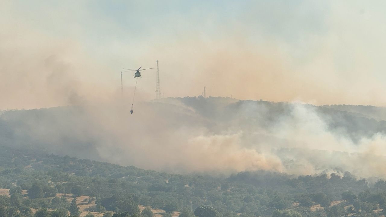 Rüzgarın da etkisiyle geniş bir alana yayılan yangın, meşelik alana sıçradı.