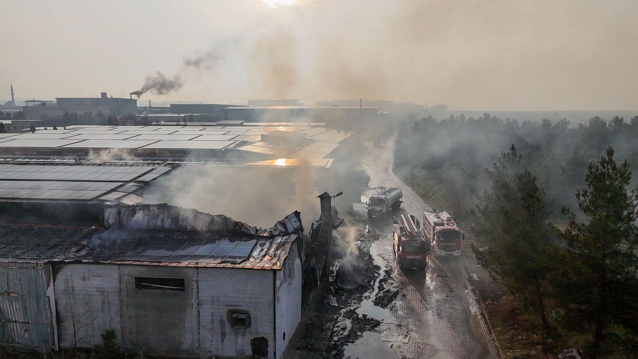 Kısa sürede büyüyen alevler, fabrikanın çatısındaki güneş panellerine sıçradı.