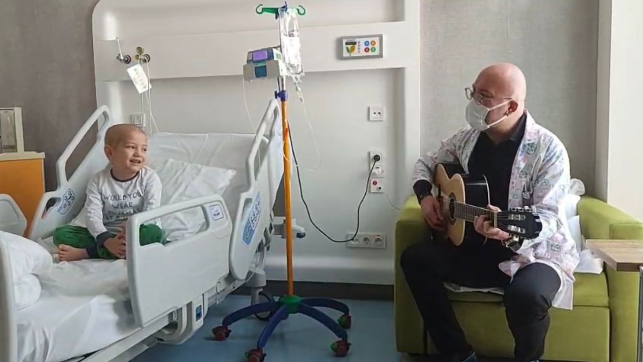 Mehmet Utku Türe de bir süredir hastanede annesiyle kaldığını anlatarak, 'Hastanede oyun oynuyorum, çizgi film izliyorum. Burada en çok yürüyüş yapmayı seviyorum ama bisiklet de sürüyorum. Gün içinde kardeşlerimi arıyorum. Öğretmenlerim yanıma geliyor. En sevdiğim öğretmen Melike öğretmen. Arkadaşlarım da var burada. Onlarla bazen saklambaç oynuyoruz. Hastanede olduğum için en çok kardeşlerimi özlüyorum. Bir an önce hastaneden çıkıp onlara kavuşmak istiyorum. Dışarı çıktığımda babamın bana oyuncak almasını istiyorum. Babamı da özledim. Şarkı söylemeyi seviyorum. Büyüyünce iyileştikten sonra doktor olmak istiyorum. Üstün Hoca gibi bir doktor olmak istiyorum' ifadelerini kullandı. (DHA)
