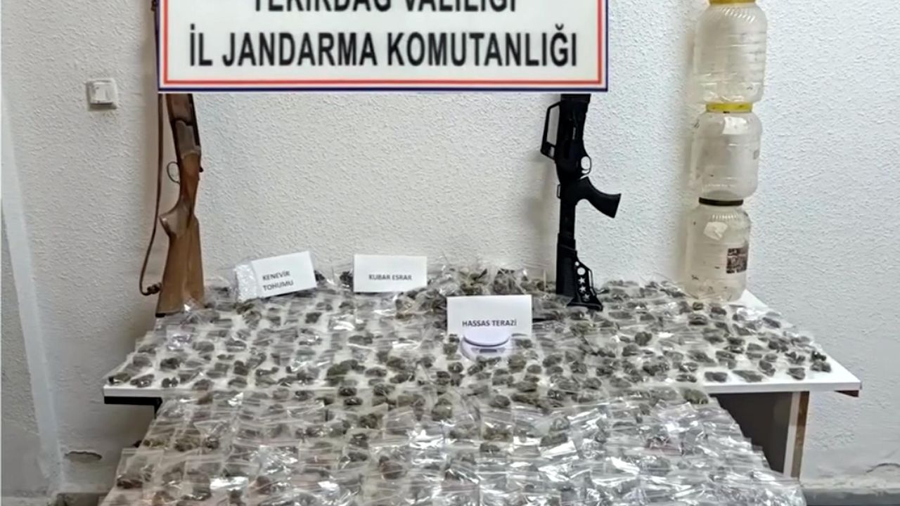 Marmaraereğlisi İlçe Jandarma Komutanlığı ile Jandarma Suç Araştırma Timi'nin (JASAT) yaptığı çalışmada ilçede Y.K.'nin evinde yüklü miktarda uyuşturucu bulunduğu ve ticaretini yaptığı belirlendi. Bir süre teknik ve fiziki takibe alınan Y.K.'nin adresine jandarma komandoların da desteğiyle operasyon düzenlendi. Ekiplerin bahçe ve kümeste yaptığı kazılarda plastik şişeler içinde satışa hazır 1 kilo 868 gram kubar esrar, bir miktarı kenevir tohumu, 2,89 gram kenevir tohumu, hassas terazi, ruhsatsız 2 av tüfeği, suçtan elde edildiği değerlendirilen 6 bin 930 lira ile 3 cep telefonu ele geçirildi. Y.K., gözaltına alındı.