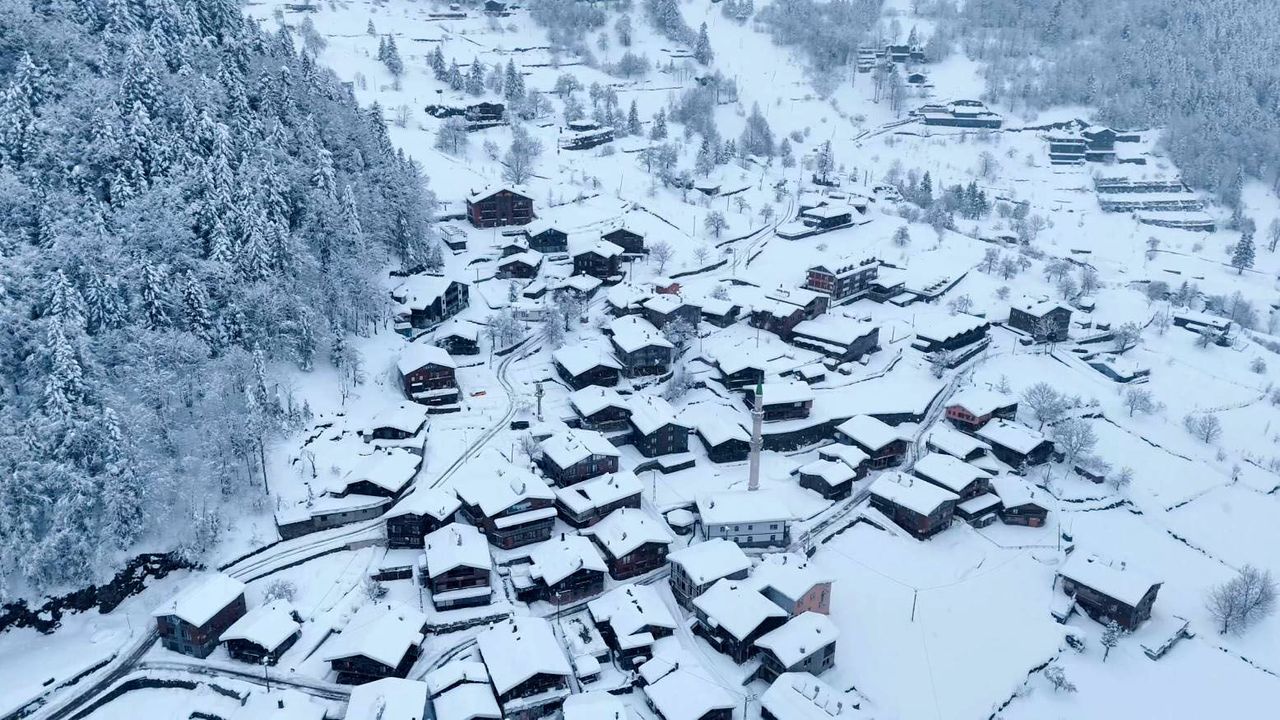 Çaykara ilçesine 20 kilometre uzaklıkta, denizden 1250 metre yükseklikte yer alan, doğal güzelliğiyle Doğu Karadeniz'in turizm merkezi Uzungöl, kar yağışı ile birlikte beyaza büründü. Uzungöl'de, kendisini besleyen dere ve çevresiyle güzel görüntüler oluştu. Otantik mimarisi, dik yamaçları ve orman örtüsünün bir arada bulunduğu Uzungöl'de, kar kalınlığı 50 santimetreye ulaşırken yüksek kesimlerdeki yaylalarda ise 1 metreyi buldu. Gölün yüzeyi de yer yer buz tuttu. Turizm merkezi, karın ve doğanın keyfini çıkarmak isteyen ziyaretçilerin ilgi odağı oldu. Uzungöl'deki karlı manzara dronla kaydedildi. (DHA)