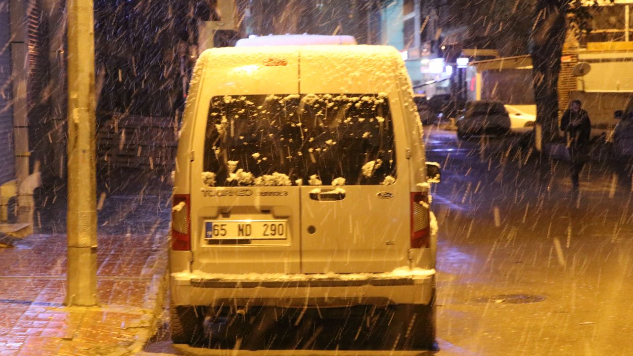 Meteorolojinin uyarısı sonrası Van merkezde soğuk hava yerini kar yağışına bıraktı. Bu yıl daha geç yağan kar yağışı ile birlikte sokaklar kısa sürede beyaza büründü, park halindeki araçların üzeri beyaz örtüyle kaplandı. Vatandaşlar, lapa lapa yağan yağışın altında gezintiye çıktı. Van'da esnaf Şenol Sarı, bu yıl gecikmeli de olsa yağan kar yağışına çok sevindiklerini belirterek, 'Bu bölgenin güzelliği de kardan geliyor. Son zamanlarda yağışın az yağması nedeniyle Van Gölü'nde çekilme var. Eğer yeterince kar yağmazsa bu bölgede de su sıkıntısı yaşanır. İnşallah bu yıl iyi bir yağış düşer. Kent merkezine yılın ilk karı düştü.' dedi. (DHA)