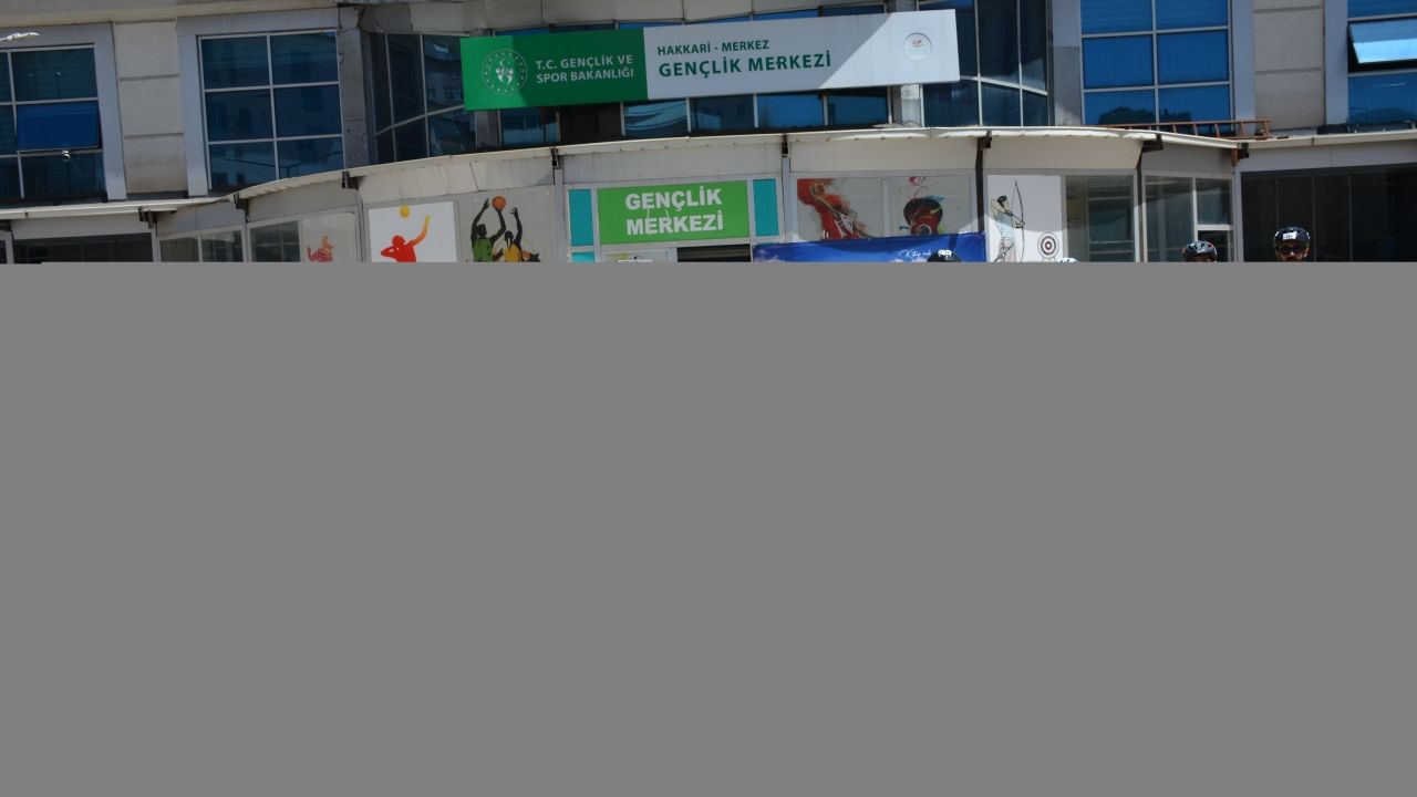 Hakkari'de düzenlenen etkinlikte, katılımcılar bisiklet turu için Gençlik ve Spor İl Müdürlüğü önünde toplandı.