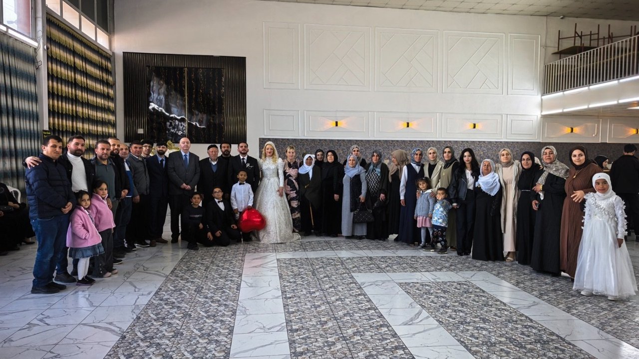 Van'daki bir düğün salonunda gerçekleştirilen törene çiftin yakınları ve çok sayıda davetli katıldı. Renkli görüntülere sahne olan düğünde davetliler, Kürtçe ve Türkçe müzik eşliğinde halaylar çekti.
