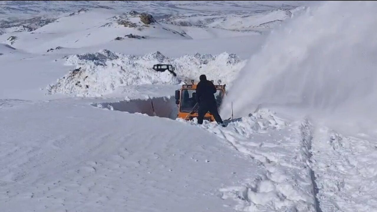 Harun AKSU/BAŞKALE, (Van), (DHA)- VAN'ın Başkale ilçesine bağlı İran sınır hattında kışın karla kapanan askeri üs bölge yollarının açılması için yoğun çalışma yürütülüyor. Ekipler, tipinin de etkisiyle yer yer 4 metreyi aşan kar kütleleri arasında güçlükle ilerliyor.