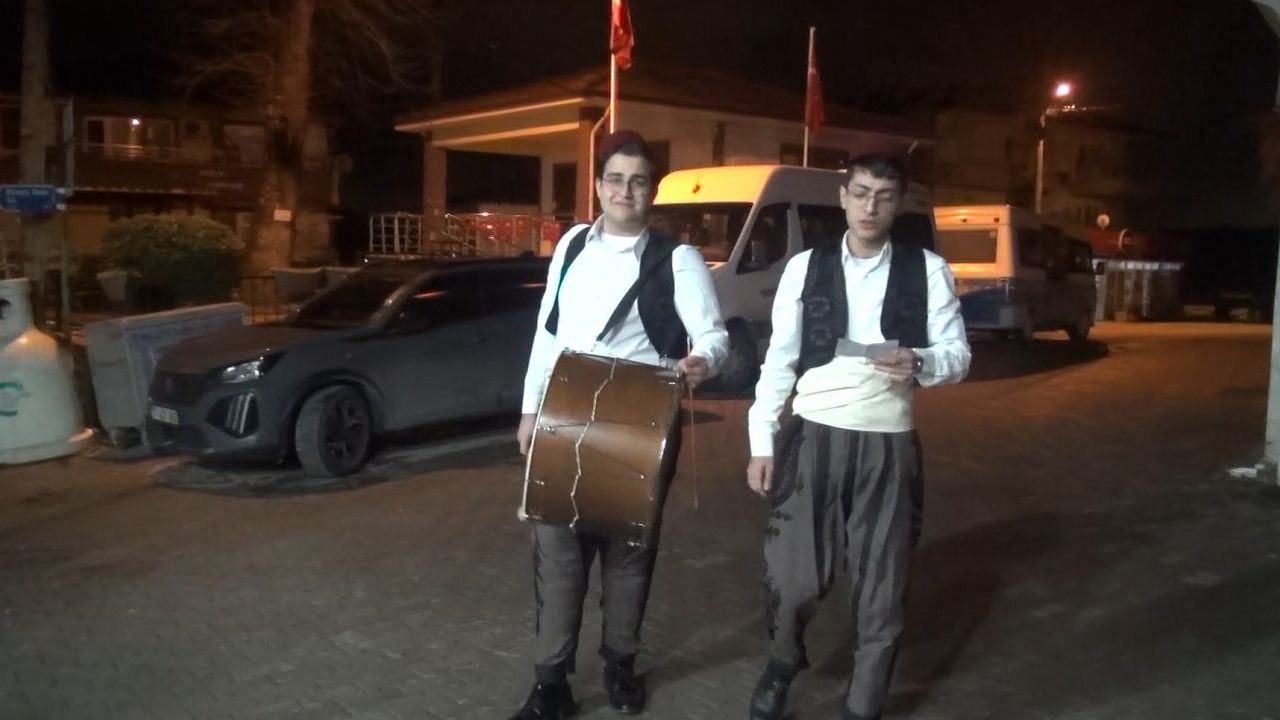 Yalova'da şalvar ve kuşak giyen öğrenciler, davul çalarak sahur geleneğini yaşatıyor/Ek fotoğraflar