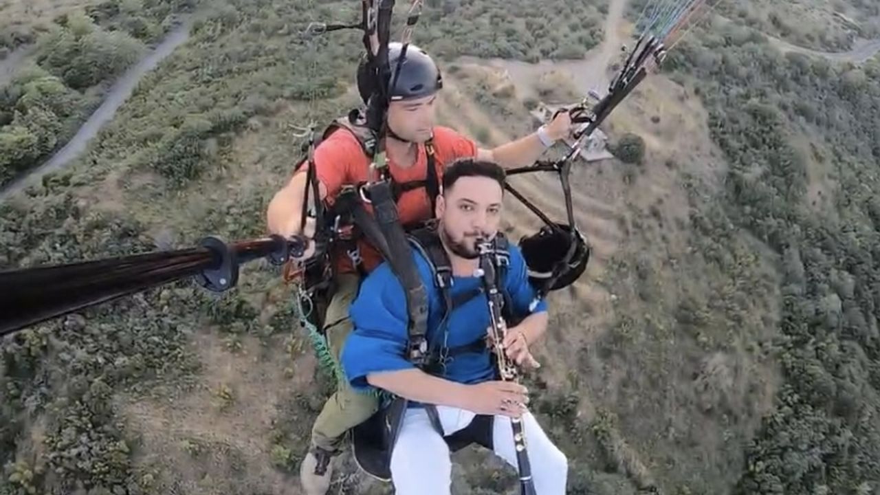 Gökyüzünde uşak makamındaki "gamzedeyim deva bulmam" şarkısını klarnetle çalan Gümüş, yaklaşık 20 dakika havada kaldıktan sonra uçuşunu sorunsuz şekilde tamamladı.