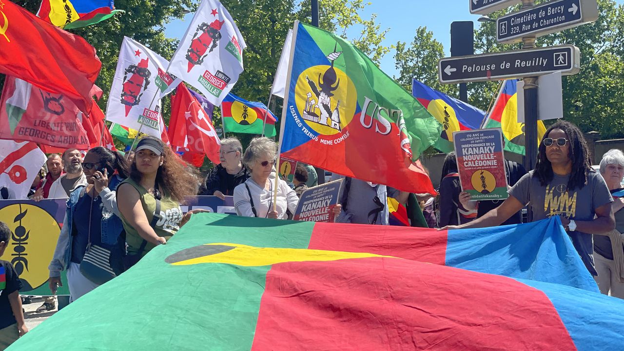 Fransa'nın Hint Pasifik'teki kolonisi Yeni Kaledonya'nın bağımsız olmasını destekleyenler, yerel saatle 14.00'te Paris'te Porte de Charenton metro durağı yakınlarında toplandı.
