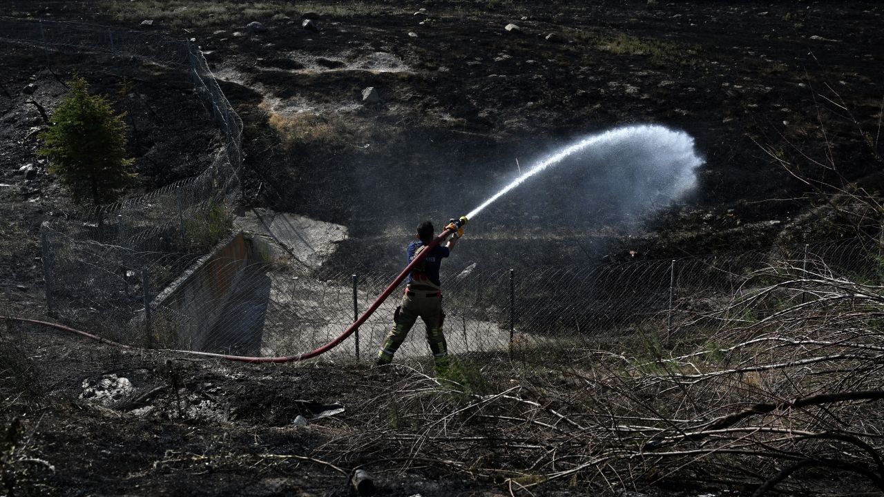 Yangın nedeniyle yaklaşık 10 dönüm arazi zarar gördü, bölgede soğutma çalışmaları devam ediyor.