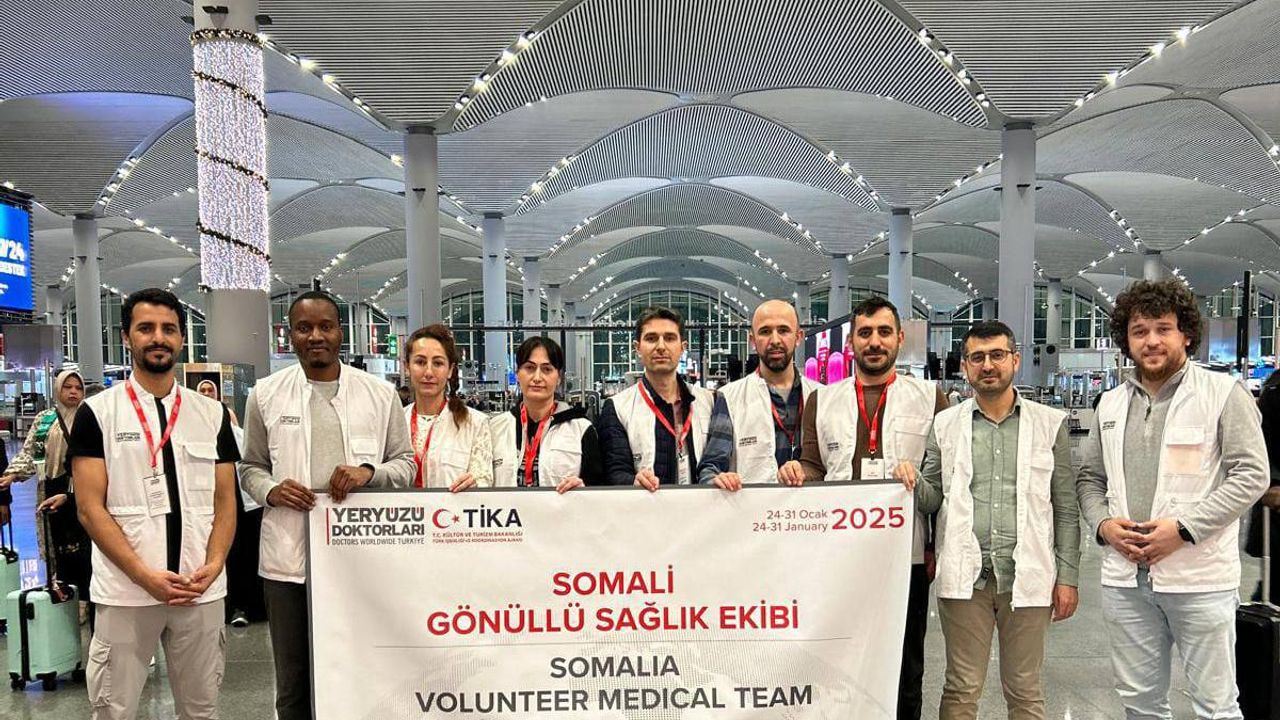 İstanbul Havalimanı'ndan hareket eden 2 KBB uzmanı, 1 anestezi uzmanı, 2 anestezi teknikeri, 2 ameliyathane hemşiresi ve 4 dernek personeli olmak üzere 10 kişilik ekip, 8 gün boyunca Somali halkına sağlık hizmeti sunacak.