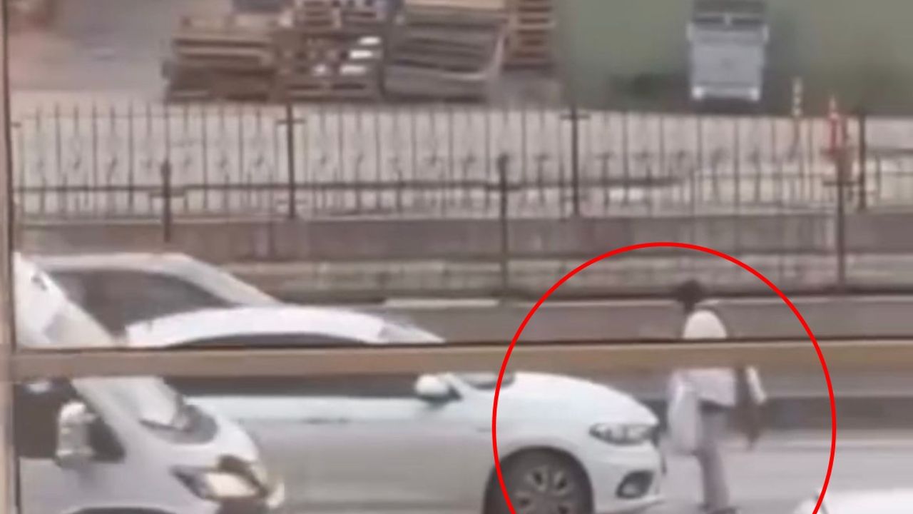 Olay, sabah saatlerinde Yeni Yalova Yolu Bulvarı'nda meydana geldi. Akan trafikte yola atlayan kadın, kollarını açarak araçların ilerlemesine izin vermedi. Kadının yolu kapatması nedeniyle caddede kısa sürede uzun araç kuyrukları oluşurken, sürücüler korna çalarak tepki gösterdi. O anlar, çevredeki bir kişi tarafından cep telefonuyla görüntülendi.